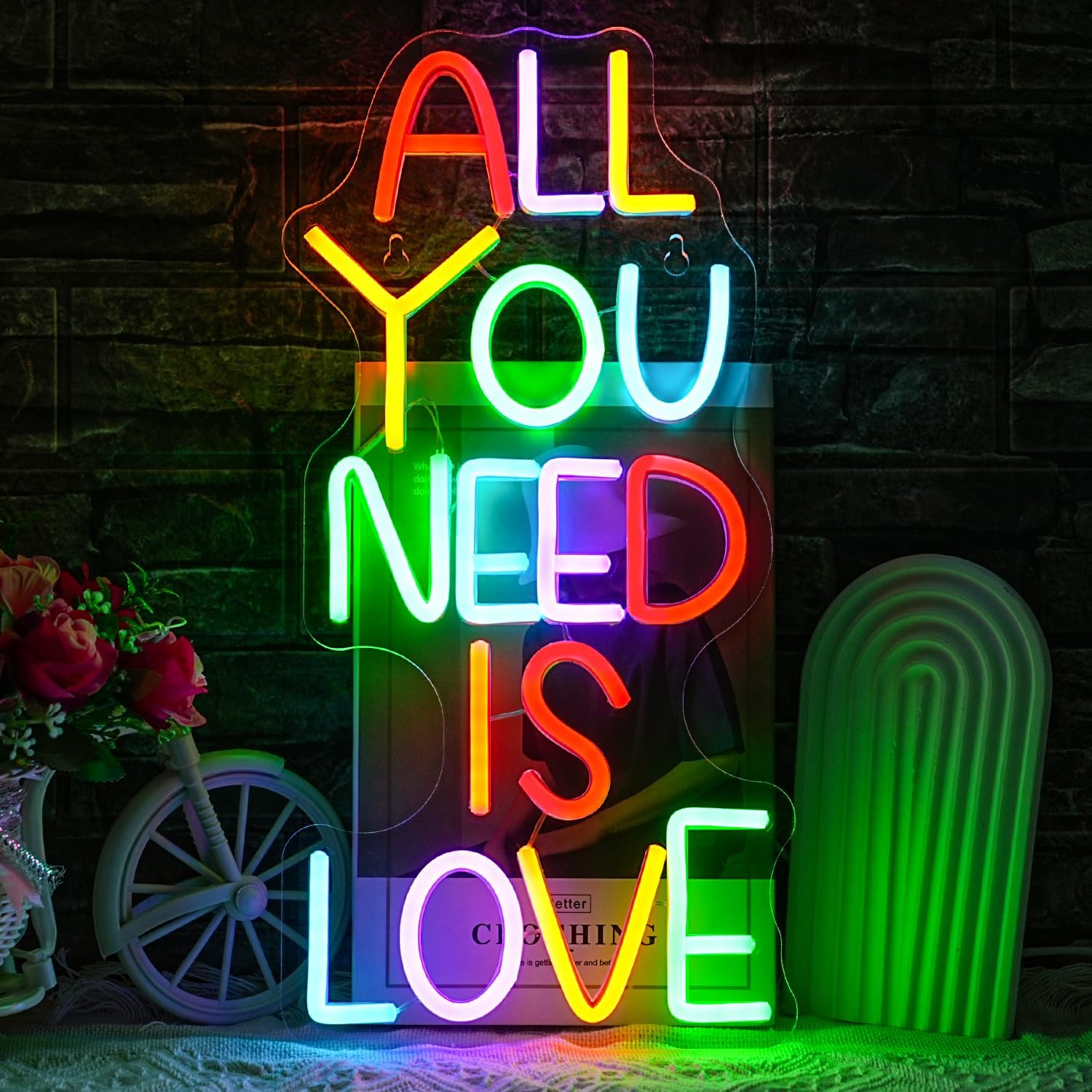 Infuse your space with warmth and optimism using this colorful “All You Need Is Love” neon sign — a vibrant reminder to stay encouraged, inspired, and full of heart.