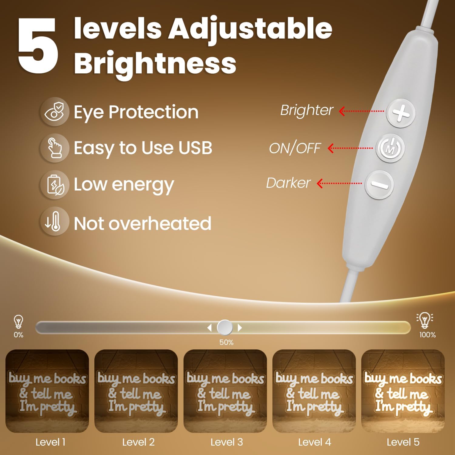 Add a playful twist to any space with the “Buy Me Books & Tell Me I’m Pretty” neon sign. This witty LED light blends charm and humor—perfect for bookshelves, reading nooks, study spaces, or cozy book cafes.