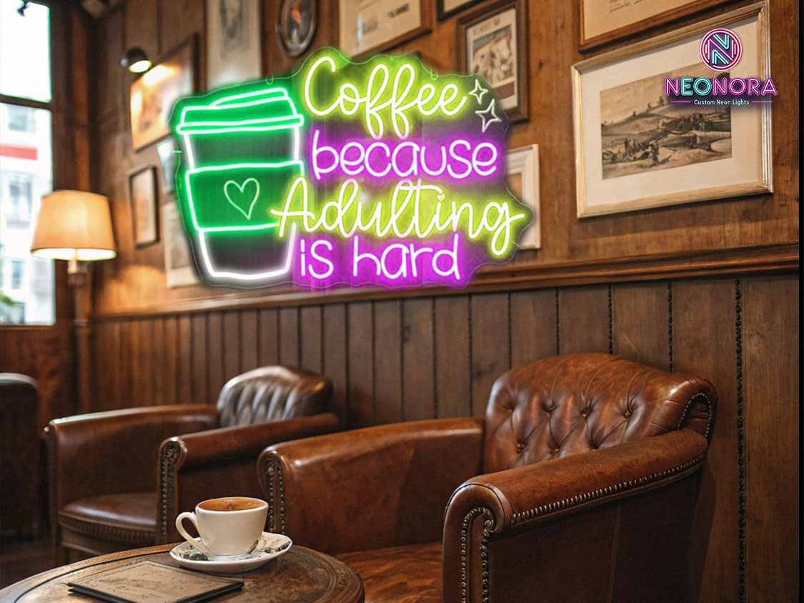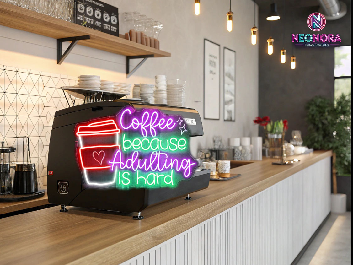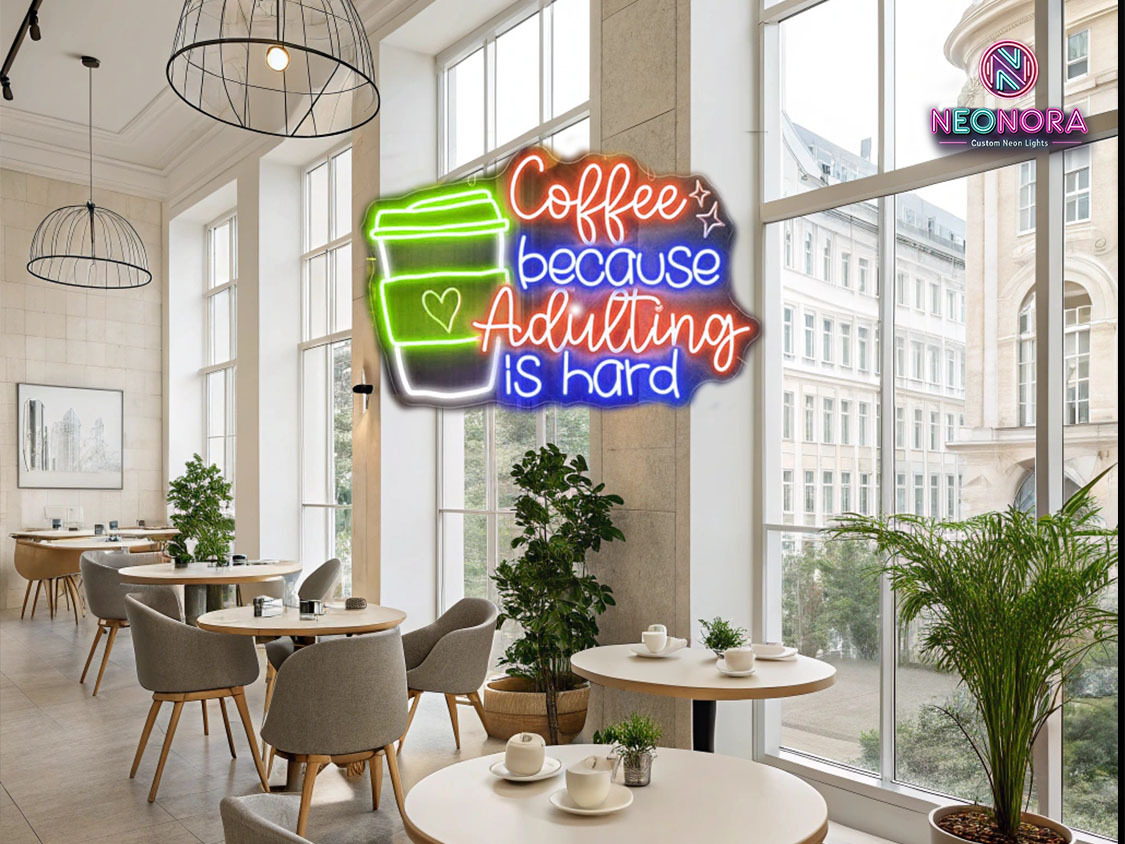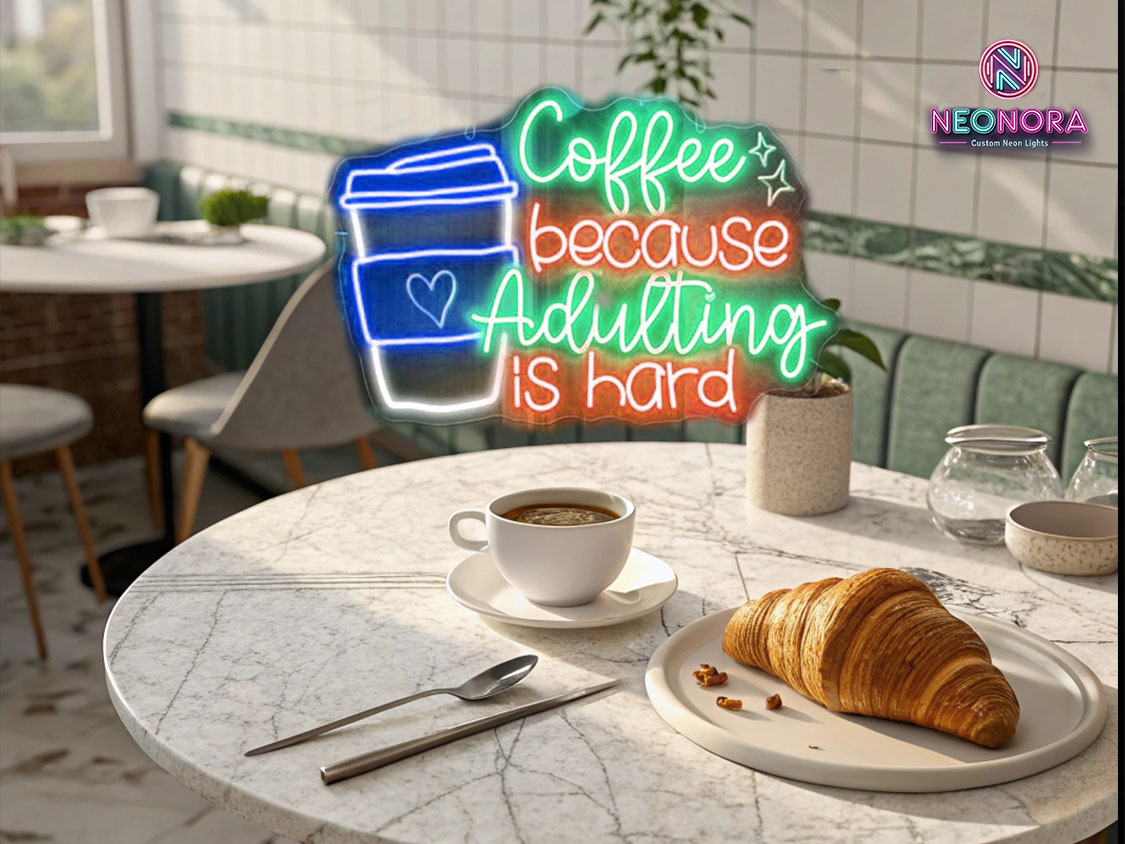 Celebrate your daily grind (and caffeine addiction!) with our laugh-out-loud “Coffee Because Adulting Is Hard” neon sign. Handcrafted for coffee warriors, office rebels, and tired parents, this LED masterpiece transforms your kitchen, home office, or coffee nook into a sanctuary of sarcasm and solidarity. Made with shatterproof silicone tubing and energy-efficient LEDs, it radiates a warm, Instagram-worthy glow for 50,000+ hours.