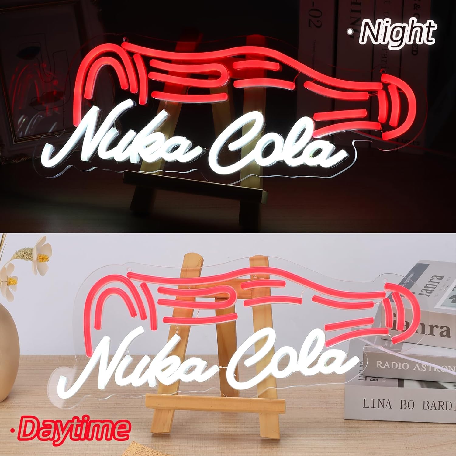 Bring the post-apocalyptic Wasteland to life with this Nuka Cola-inspired neon sign. Designed for fans of retro-futuristic game worlds, this eye-catching LED wall light recreates the iconic cola logo in glowing red—perfect for gamer dens, man caves, or themed setups.