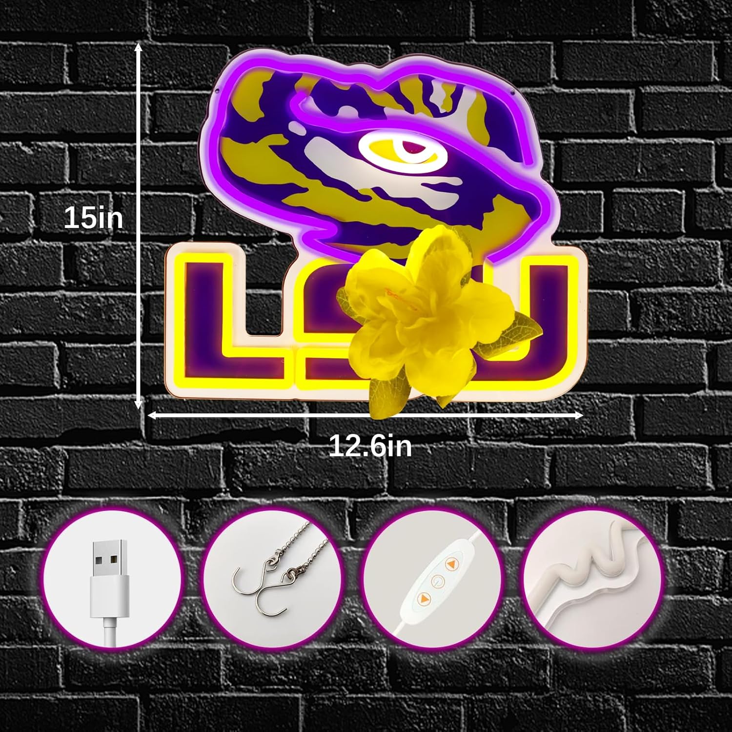 Powered via USB—no extra outlets needed. The sign includes two pre-drilled holes and a metal chain for easy hanging or tabletop placement. Just plug it in, switch it on, and enjoy the instant vibe boost.