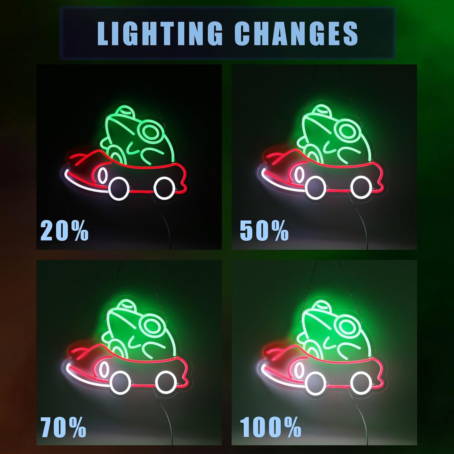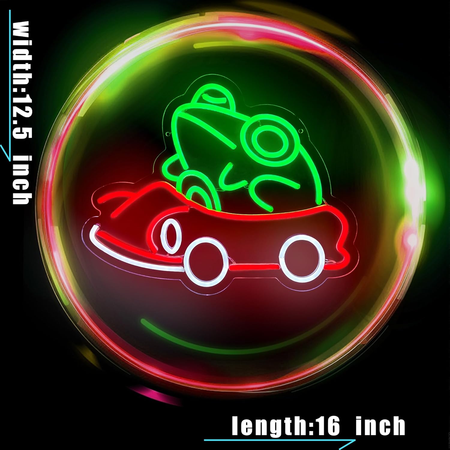 Light up your space with this one-of-a-kind neon sign featuring a cute frog joyriding in a car—a playful twist on retro neon decor. Perfect for adding personality to man caves, kids’ rooms, game rooms, or quirky offices!