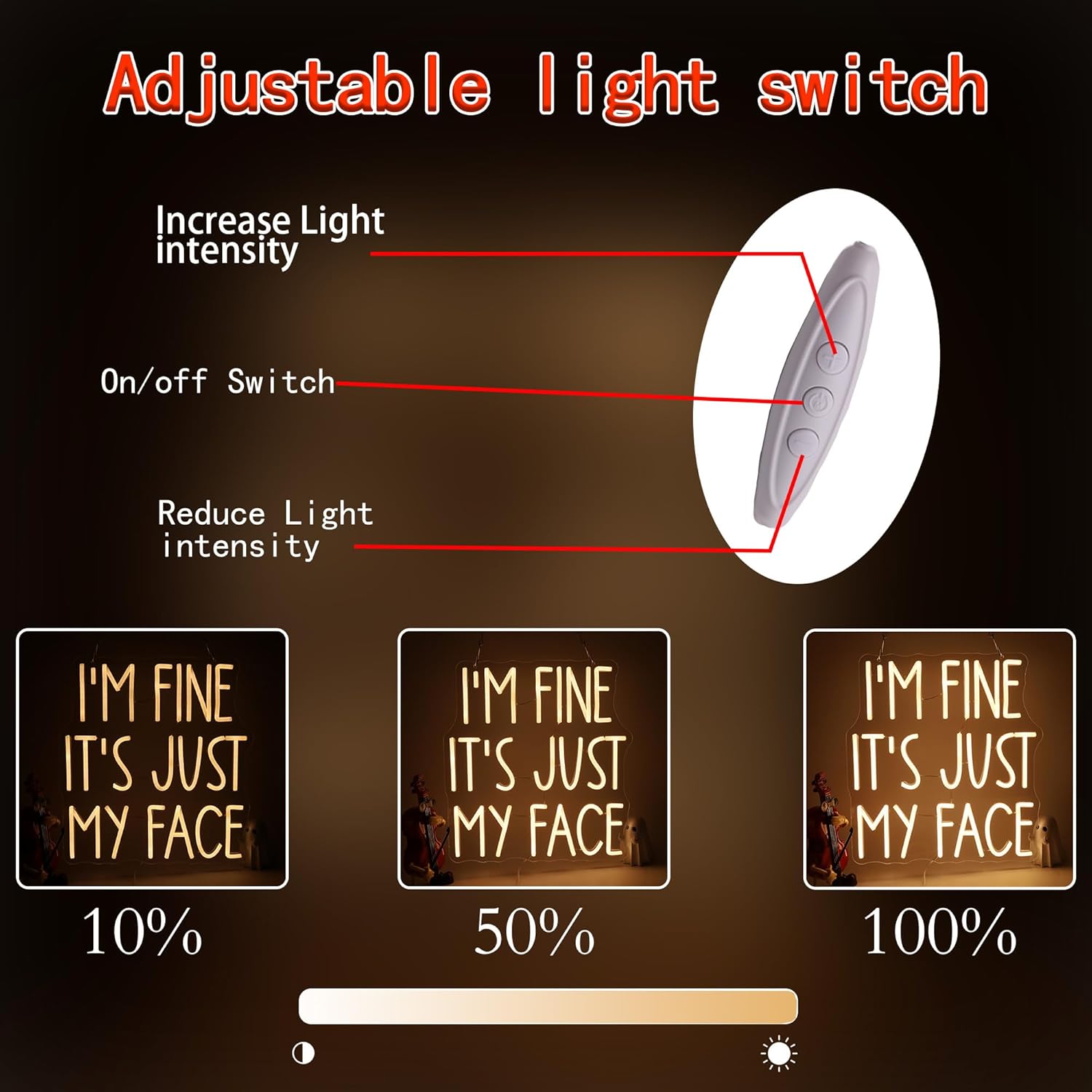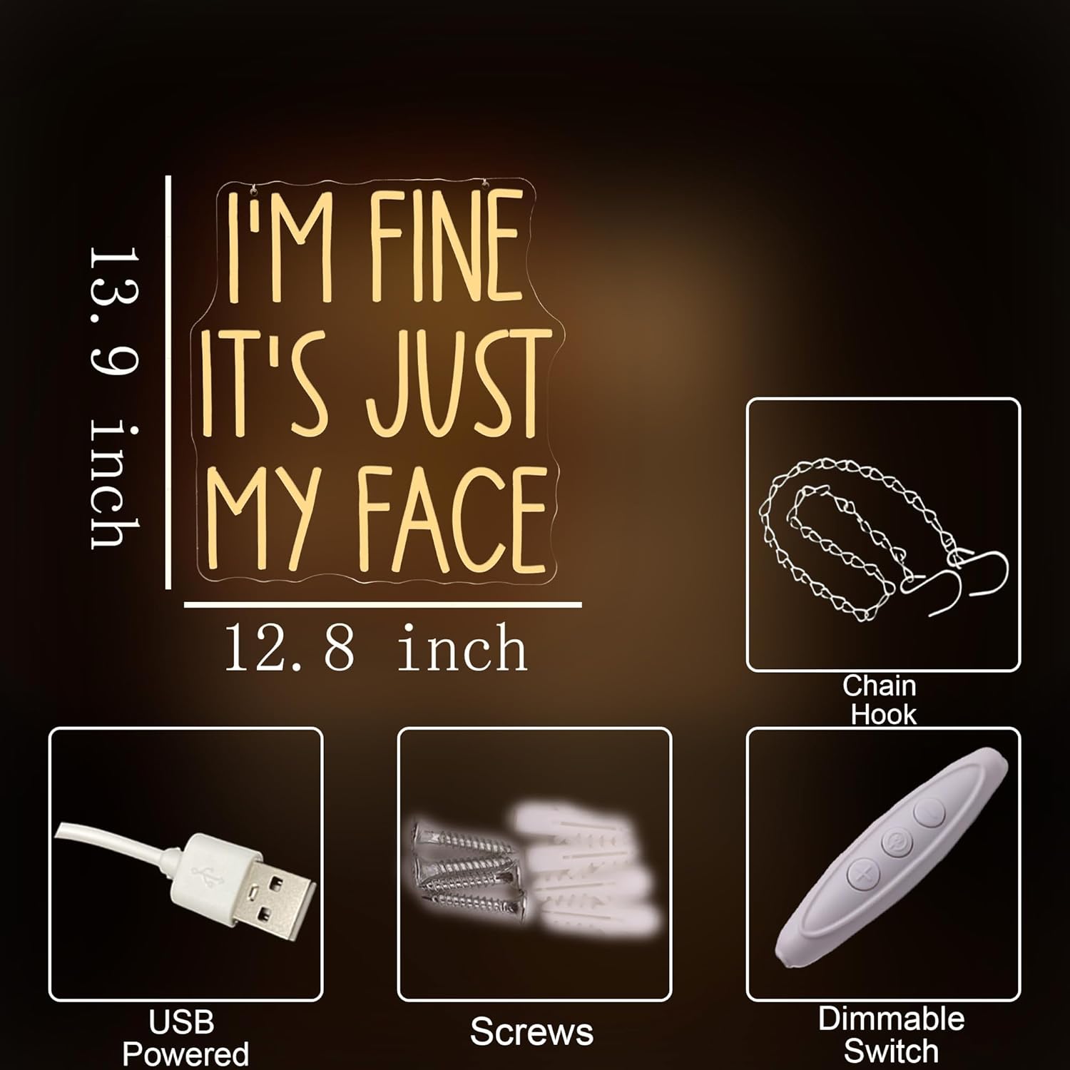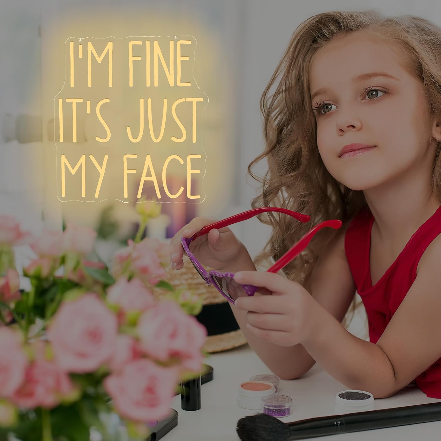 Add humor and personality to any space with the “I’m Fine, It’s Just My Face” LED neon sign. This eye-catching piece is perfect for bedrooms, bars, game rooms, home offices, or as a quirky backdrop for parties.