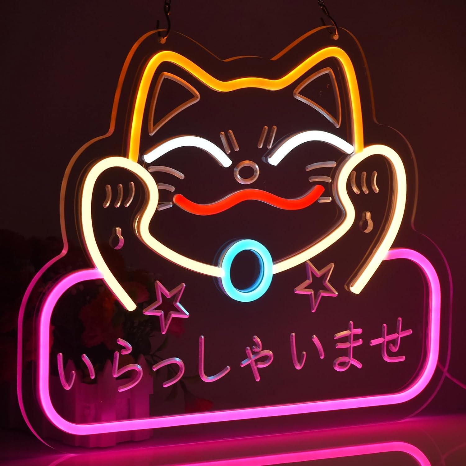 Japanese Welcome Neon Sign Fortune Cat Wall Decoration