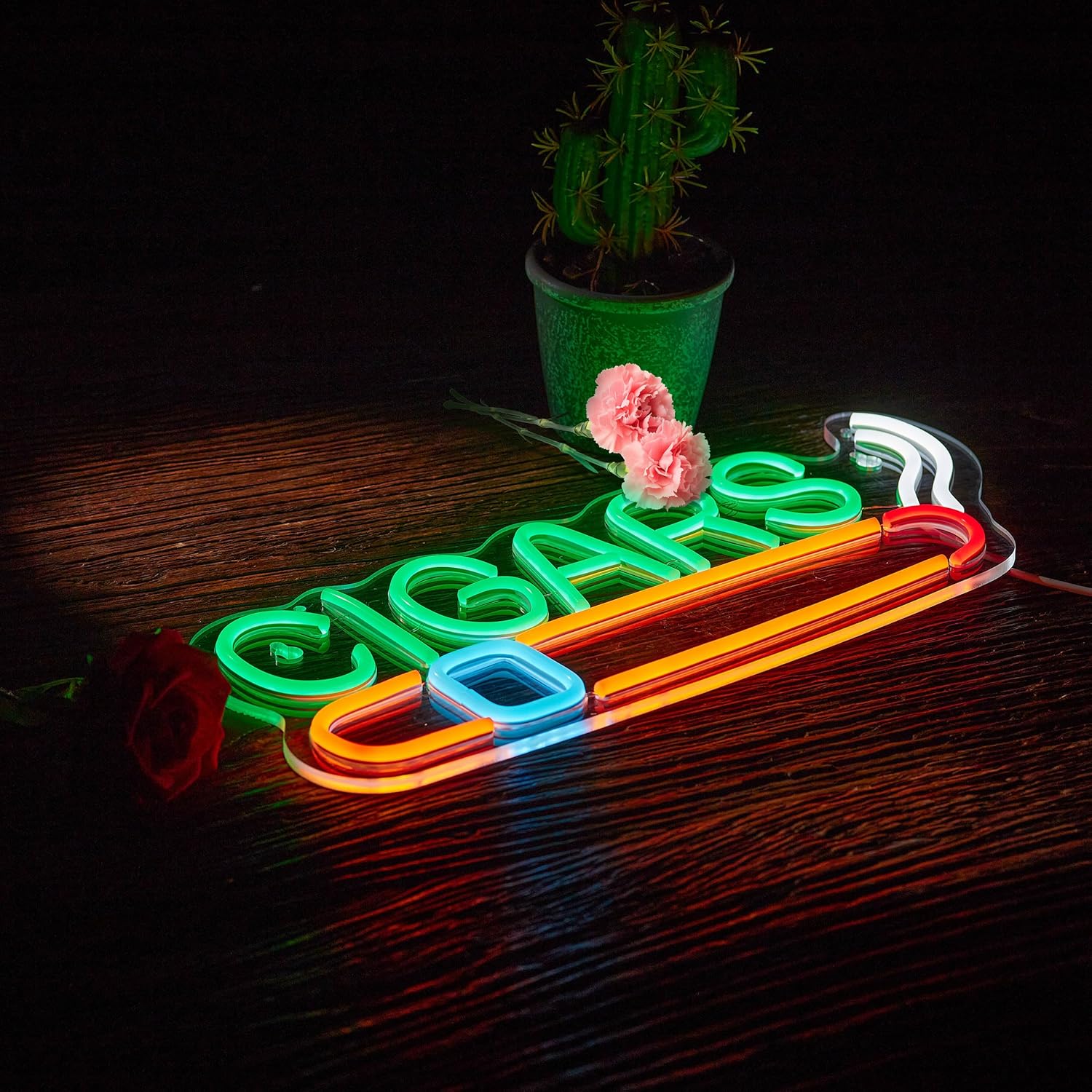 Crafted with flexible silicone LED strip lights and mounted on a clear acrylic backboard, this neon sign delivers vibrant glow and durability.