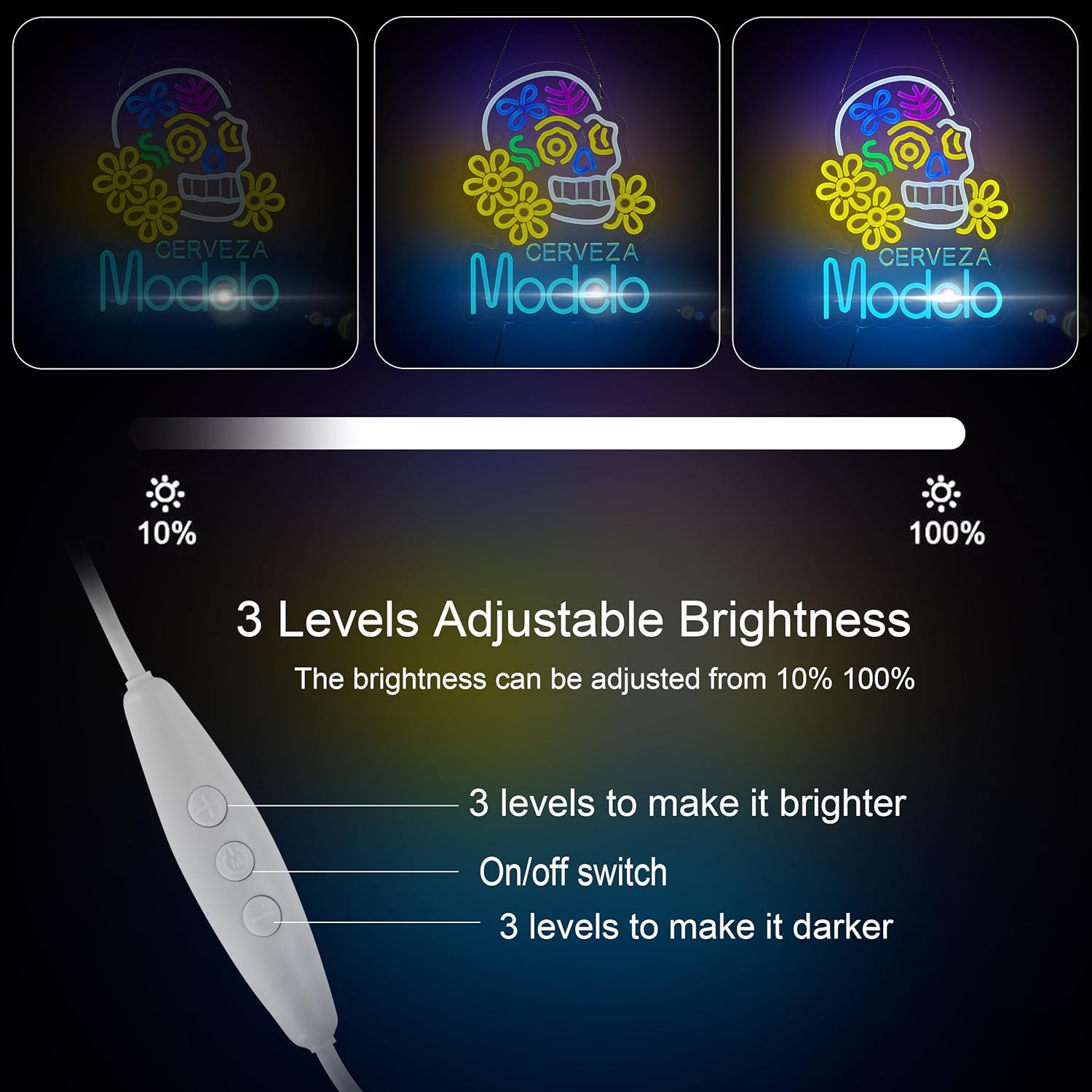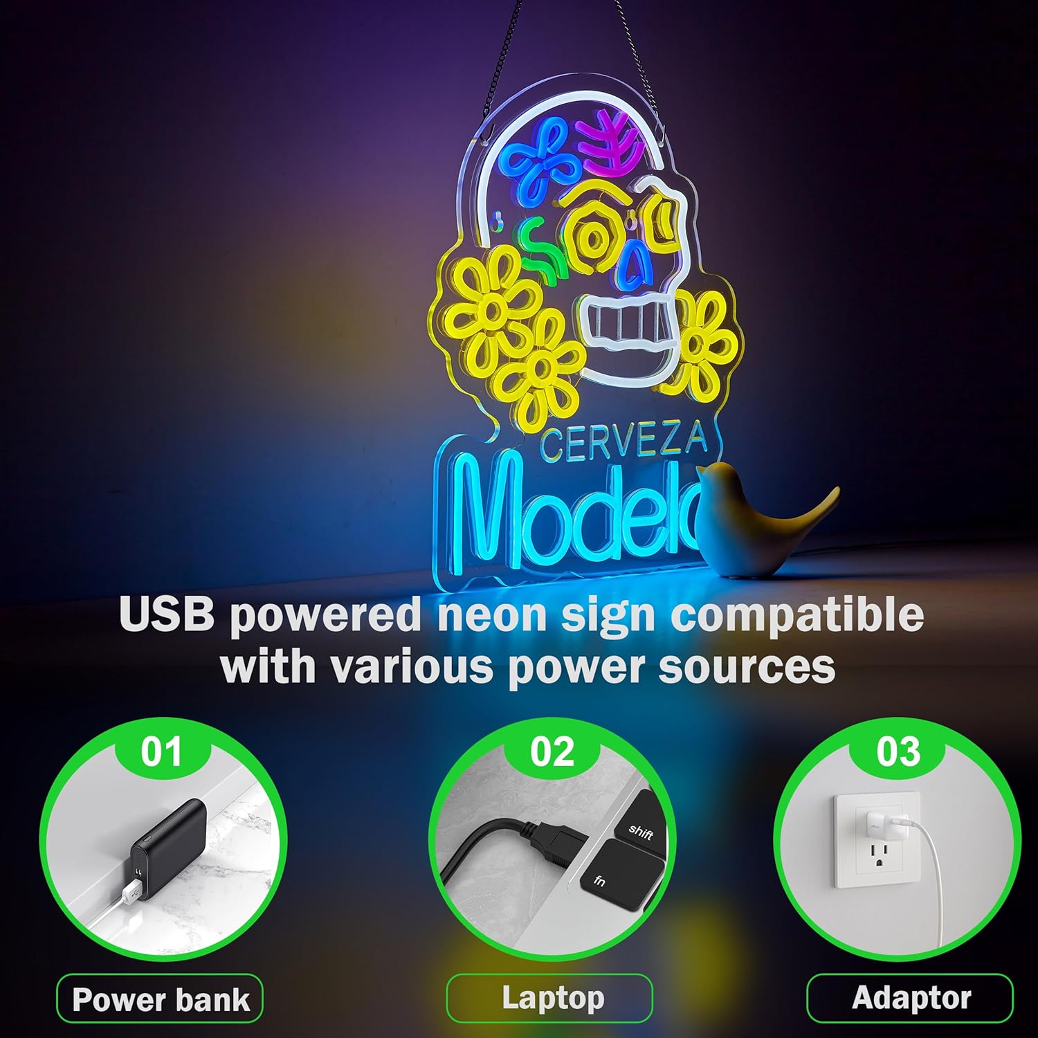 Equipped with a built-in dimmer and a USB-powered switch, this LED sign allows you to adjust brightness levels to match your vibe. Operates safely on low 5V voltage (power adapter not included).