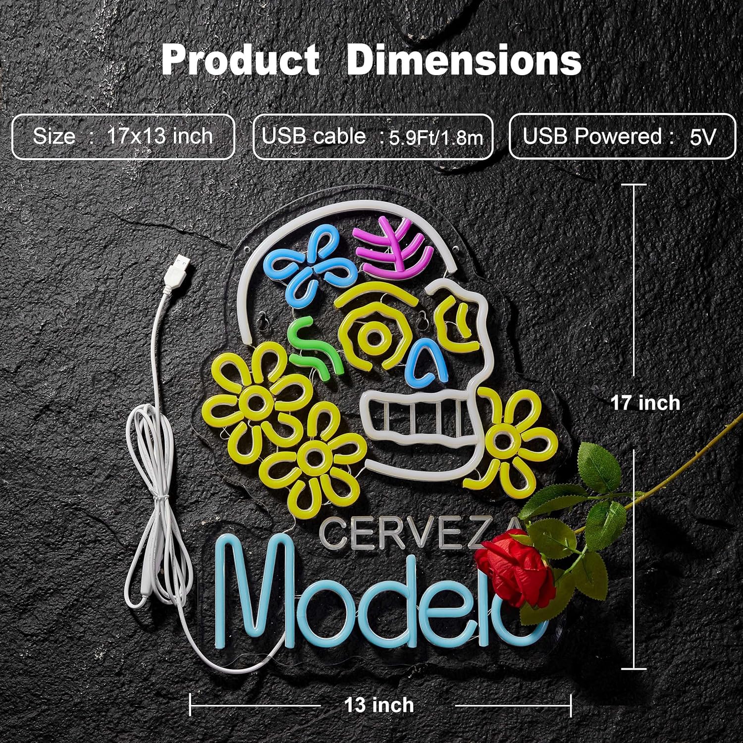Measuring 17″ x 13″ (420mm x 320mm), it’s ideal for bedroom walls, game rooms, bars, or storefronts. Includes a 5.9 ft (1.8m) USB cable for convenient power access. Color appears exactly as shown in the product images.