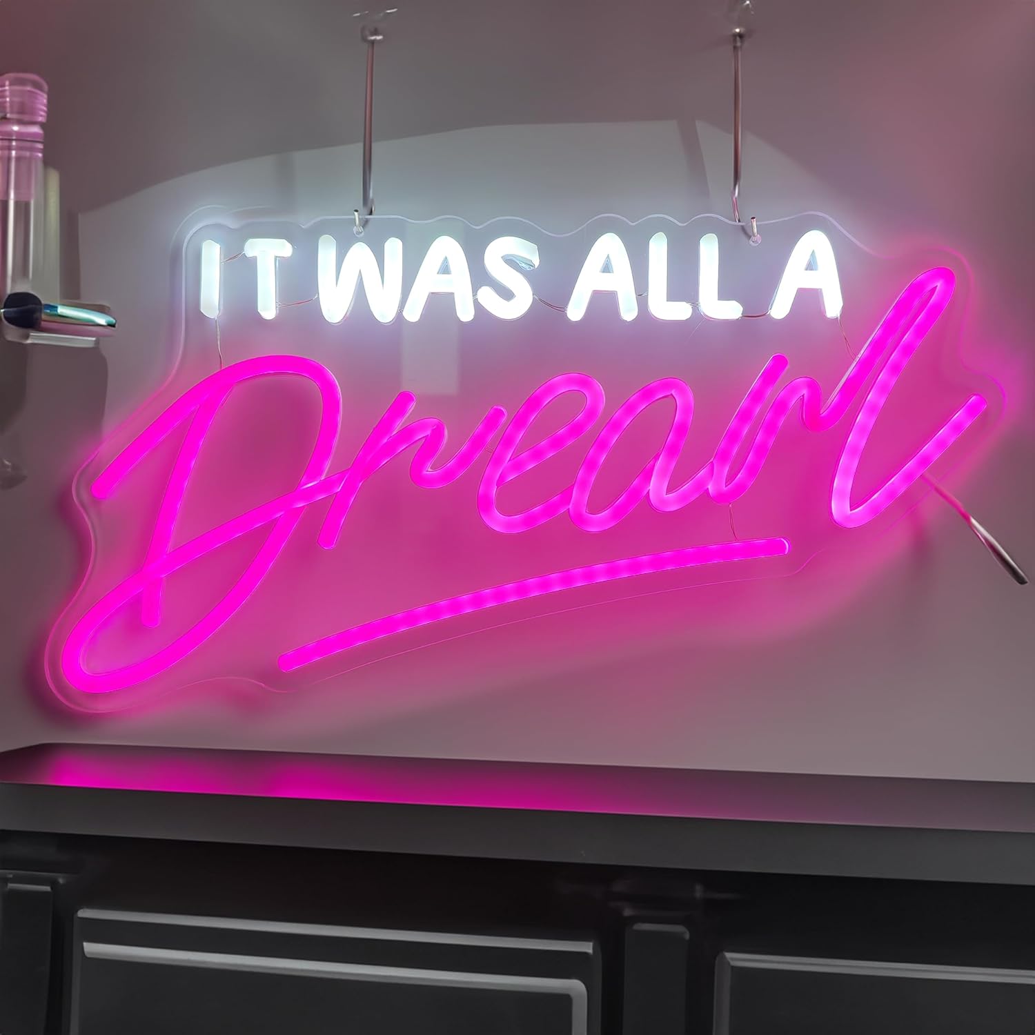 Transform any room with a vibrant neon sign that casts a brilliant glow across walls, windows, or doors. Perfect for creating a cozy, romantic, or artistic ambiance, this piece elevates parties and everyday decor alike. The built-in dimmer lets you customize brightness to suit any mood.