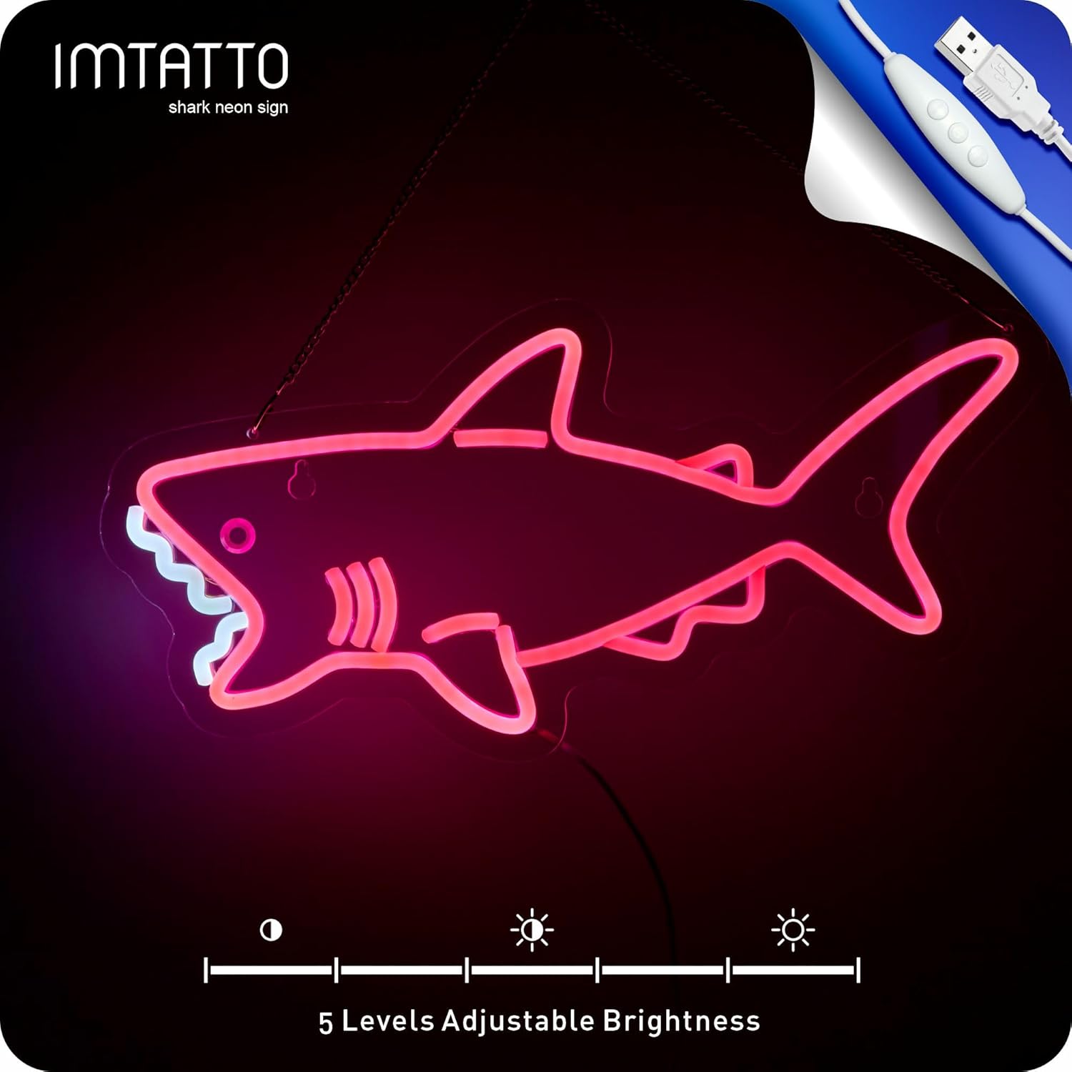 With six levels of brightness, you can set the perfect mood for any time of day or night. Whether it’s ambient lighting or a striking visual centerpiece, the shark sign adapts effortlessly.