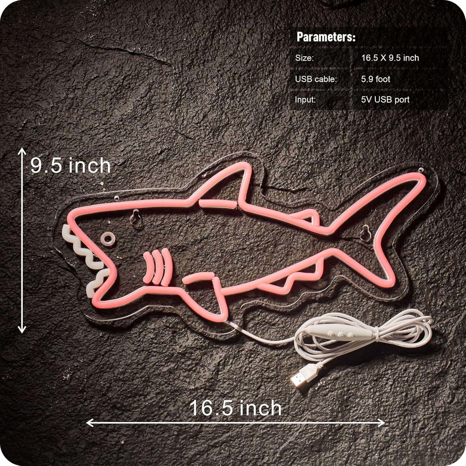 Pink Shark Neon Sign – Cute LED Wall Decor Light with Dimmer, USB Powered for Bedroom, Game Room, or Bar | Fun Shark Neon Light for Kids and Adults
