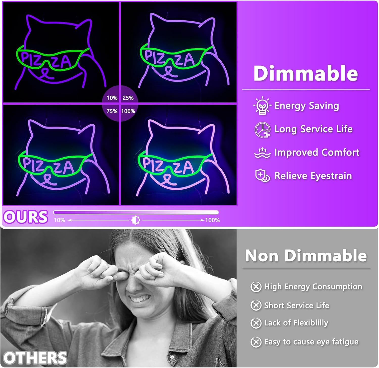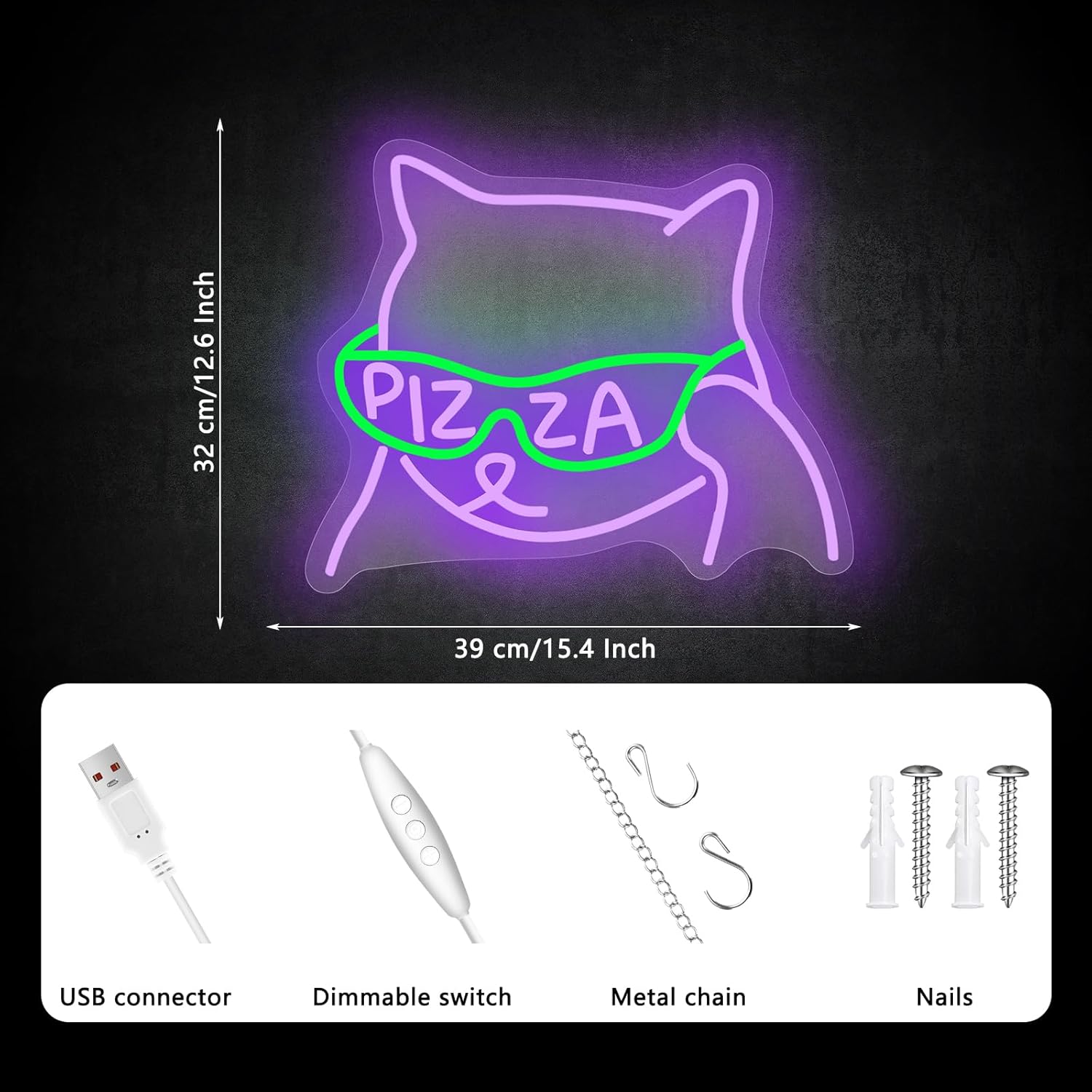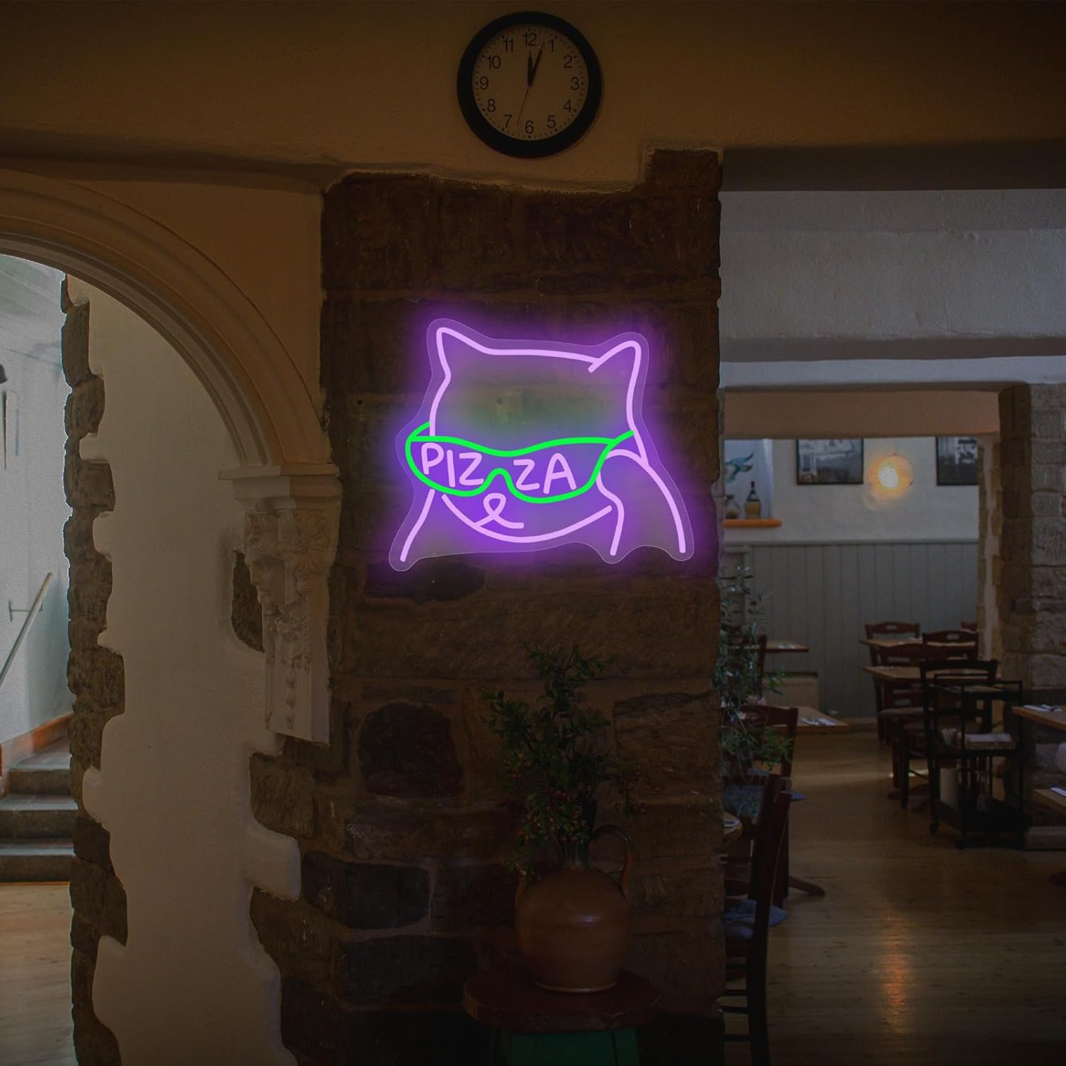 This fun neon sign features a stylish cat wearing pizza sunglasses – an instant conversation starter that grabs customer attention! Ideal for: