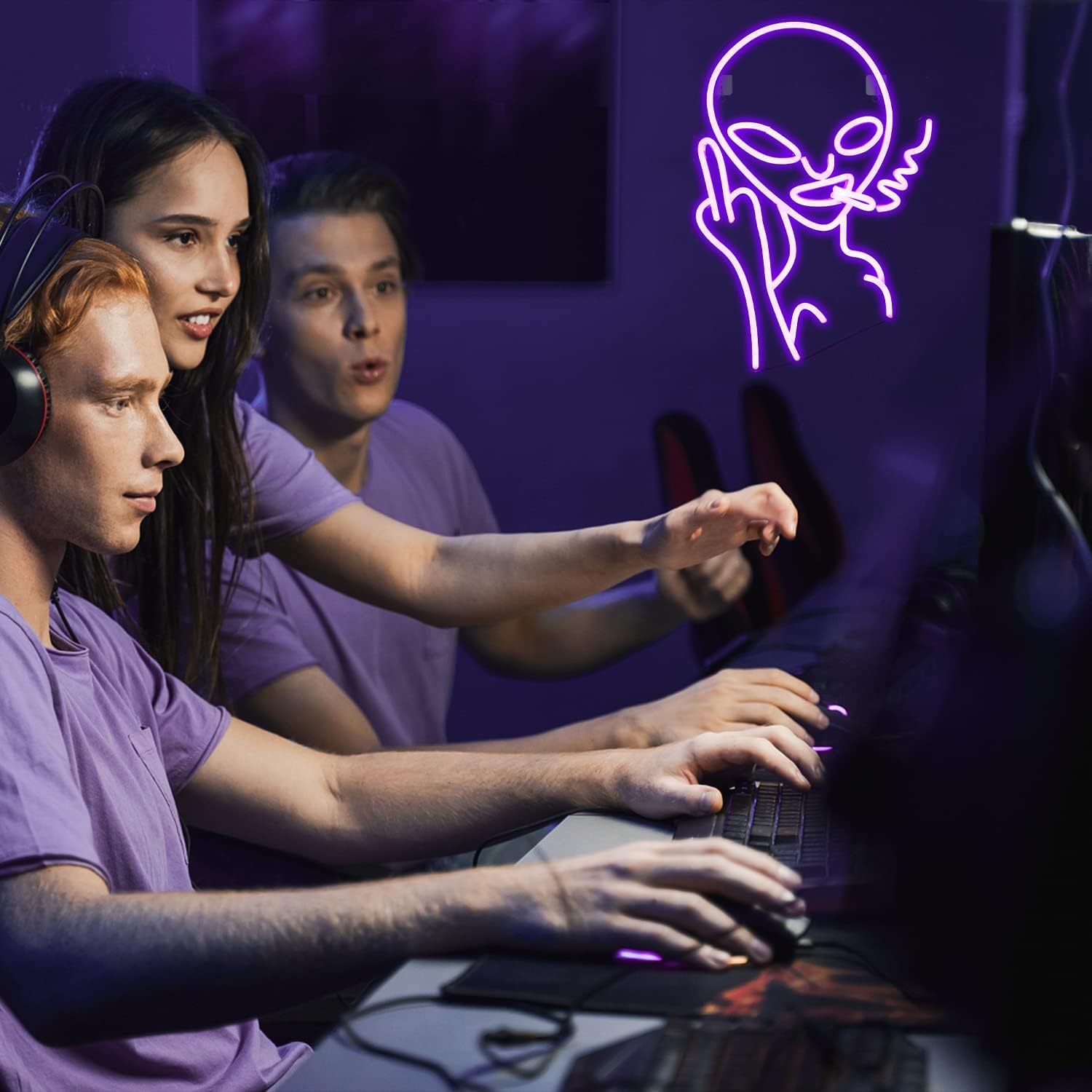 Add an electrifying glow to your space with this bold Alien neon light—perfect for bedrooms, game rooms, or offices that need a little sci-fi flair and fun.