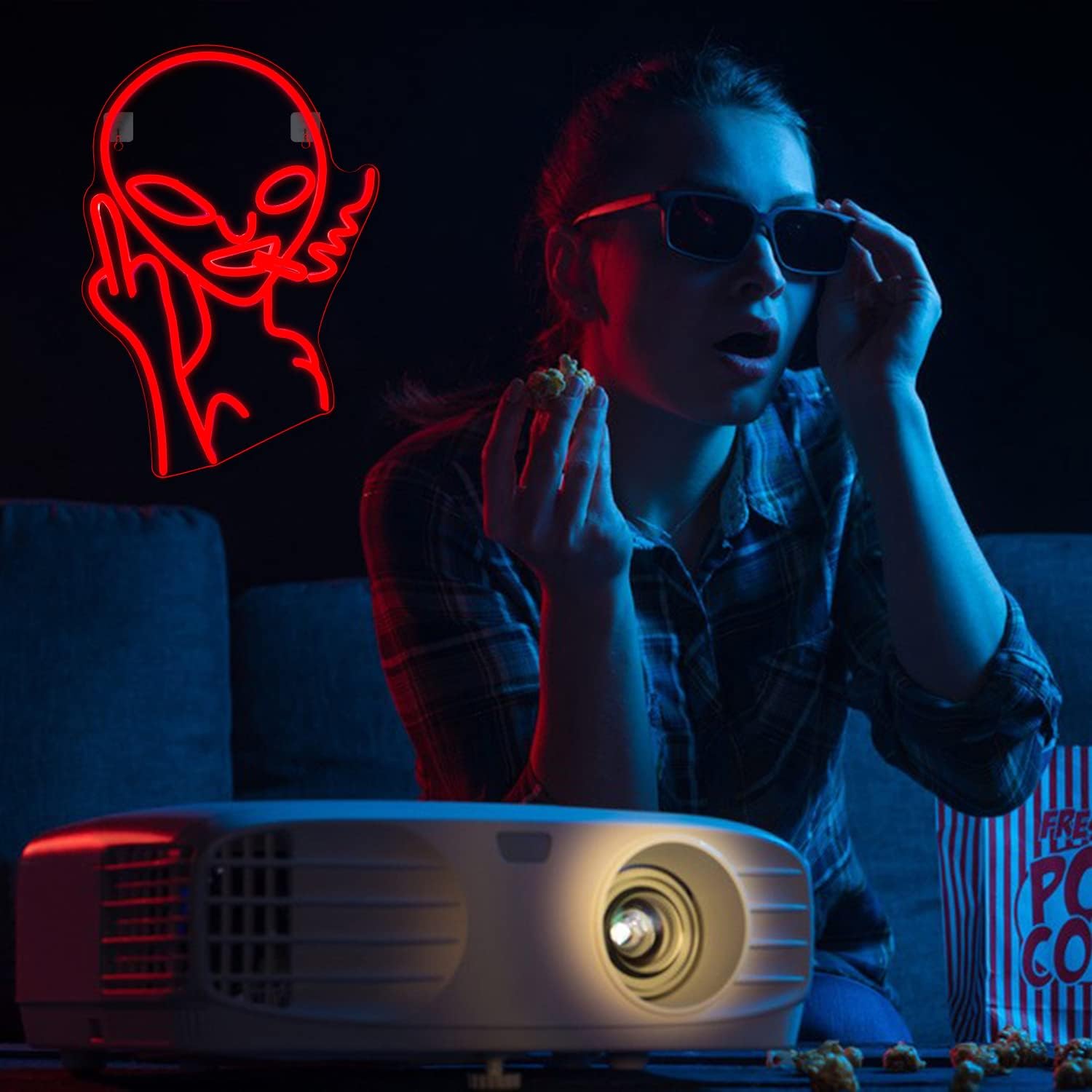 Alien Neon Sign for Bedroom or Office, USB Powered Sci-Fi Red LED Wall Light for Teen Room, Game Zone, or Dorm Decor