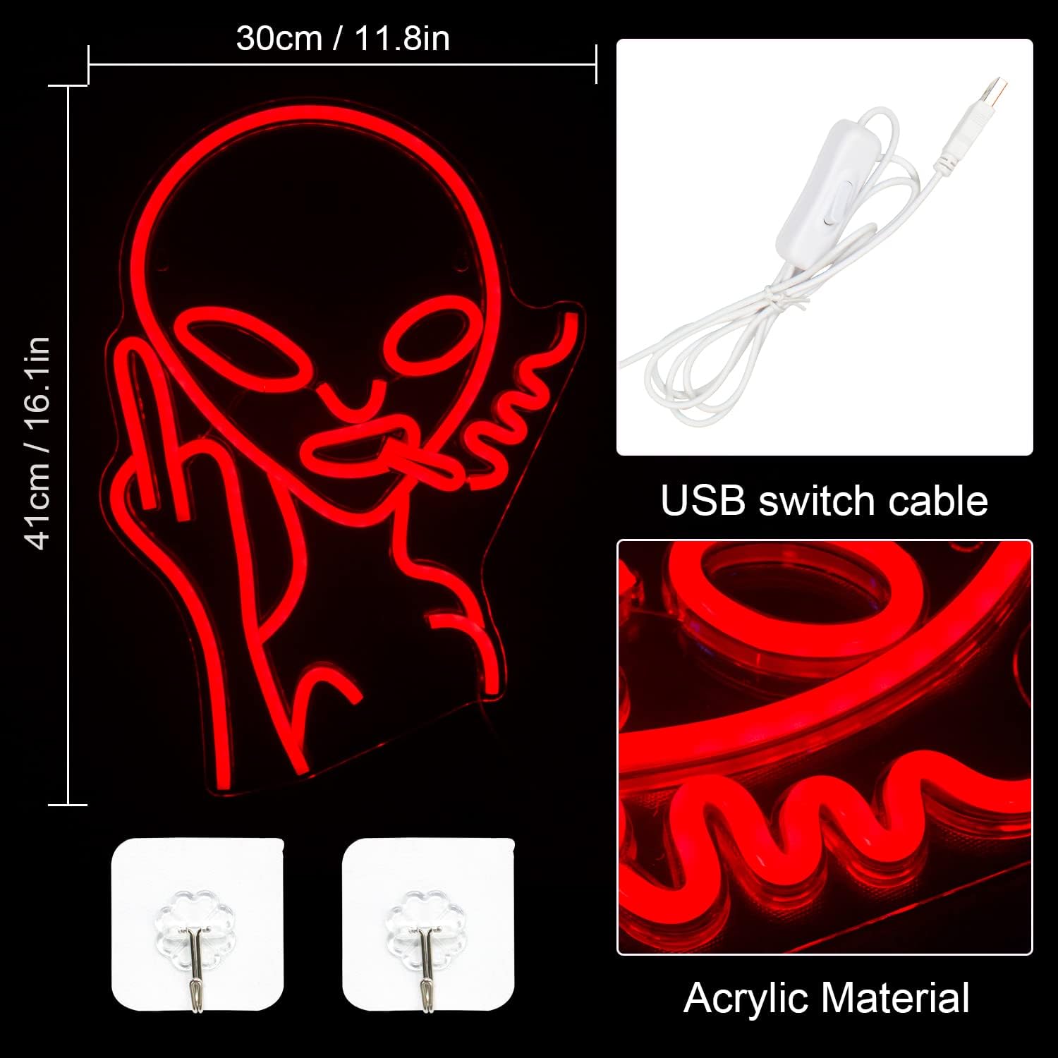Your order comes with the alien neon sign, USB power cable, dimmer switch, and strong quality control—each piece is tested before shipping to ensure it arrives in perfect glowing condition.