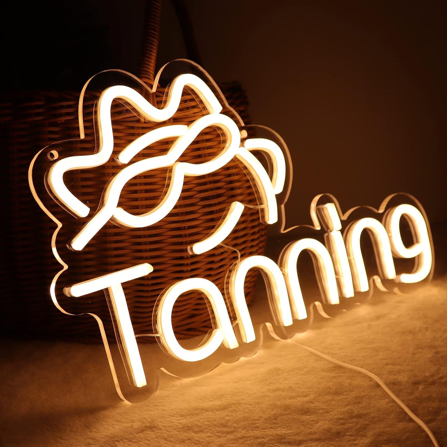 Warm white “Tanning” LED neon sign, perfect for tanning salons, business decor, or as a unique gift for birthdays, parties, or holidays.